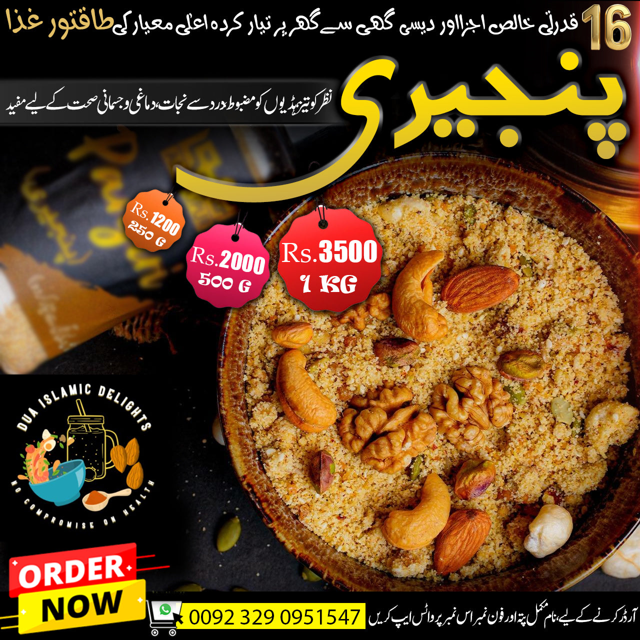 This Panjiri is made under Dua Islamic Delight, a verified sub-brand of MessageTV, delivering pure, homemade, and additive-free nutrition to your door.